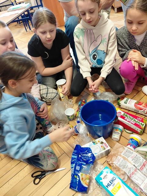 Na wstępie dzieci zapoznały się z kolejną częścią opowiadania pana PreZero Hero. Wykonały zadanie i zauważyły, że części plastiku unoszą się na wodzie.