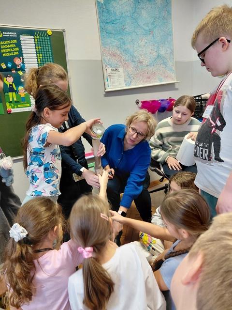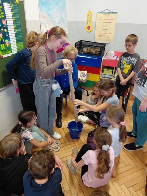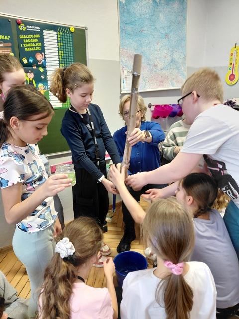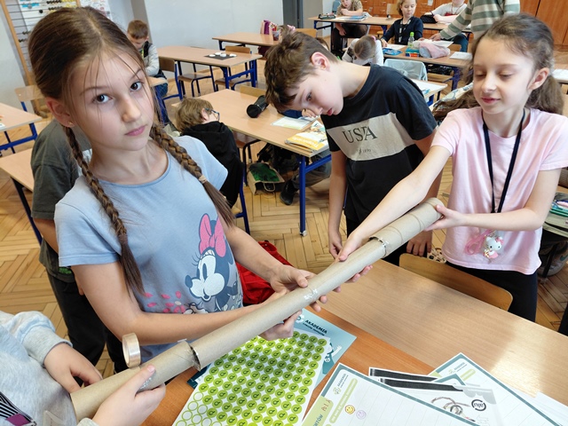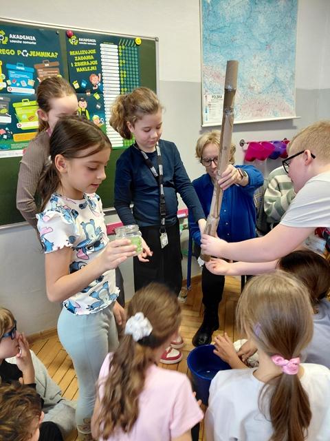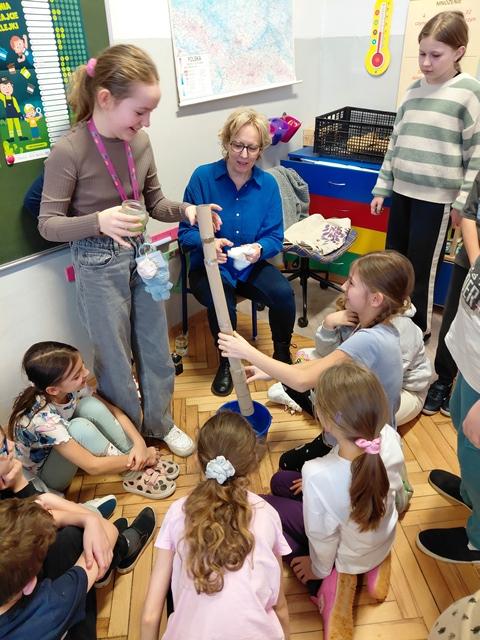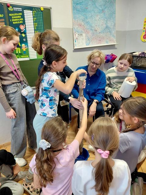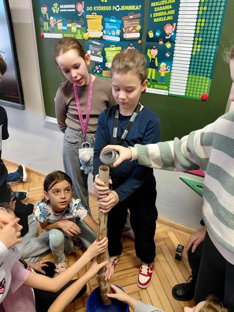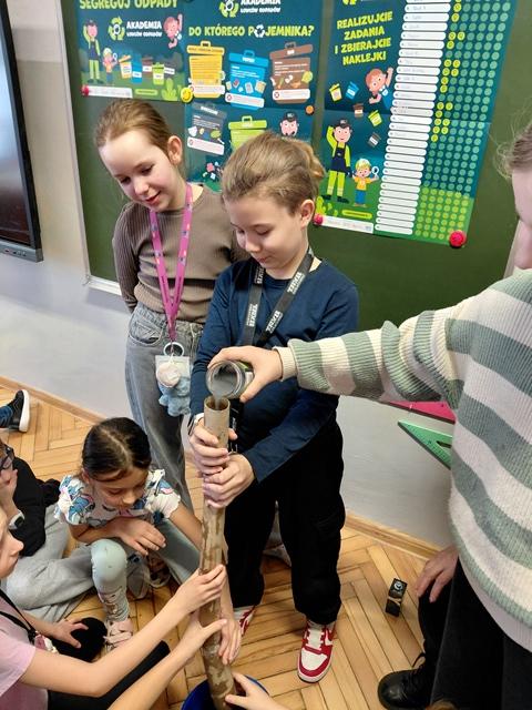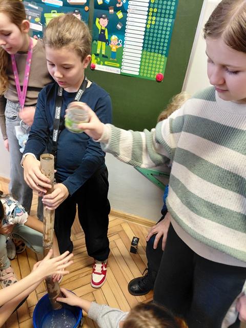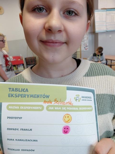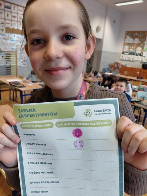 Na wstępie dzieci zapoznały się z filmem edukacyjnym "System segregacji surowców". Następnie wykonały zadania otrzymane od PreZero Hero: podzieliły wszystkie śmieci do właściwych pojemników. Rozwiązały zagadki superbohatera oraz Janka. Najciekawszy okazał się eksperyment "Rura kanalizacyjna". Dzieci bezbłędnie wyciągnęły z niego wnioski! Oceniły eksperymenty i wkleiły jedną naklejkę na plakacie Łowców!