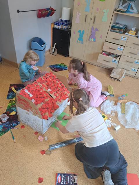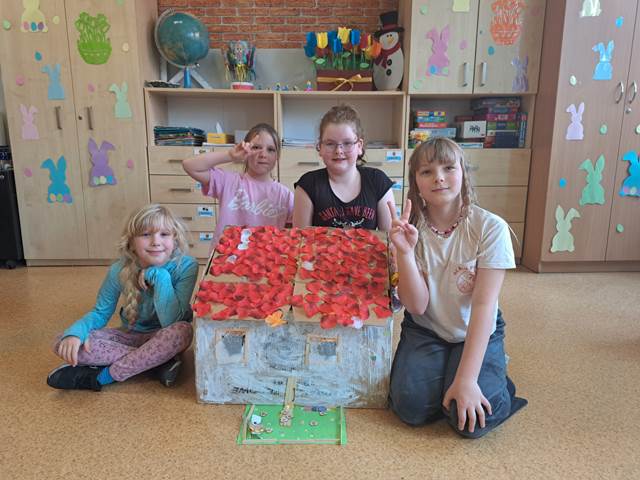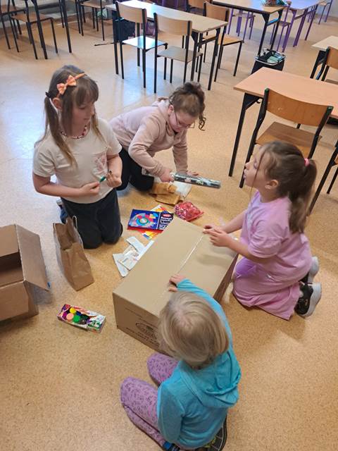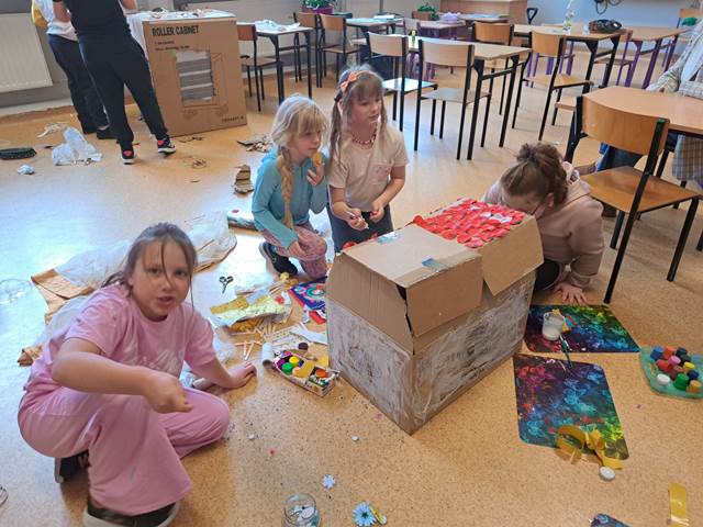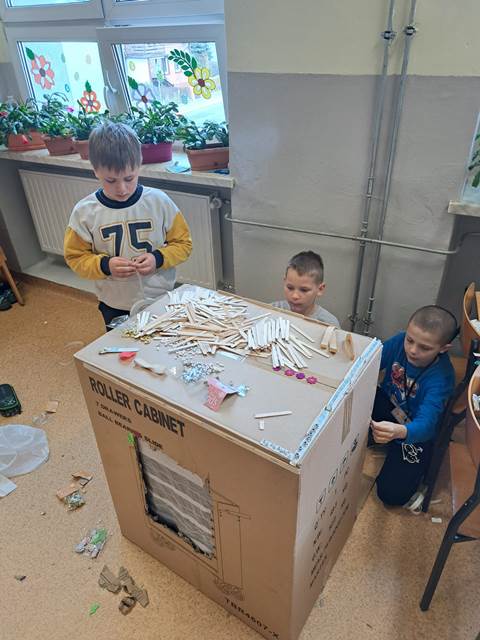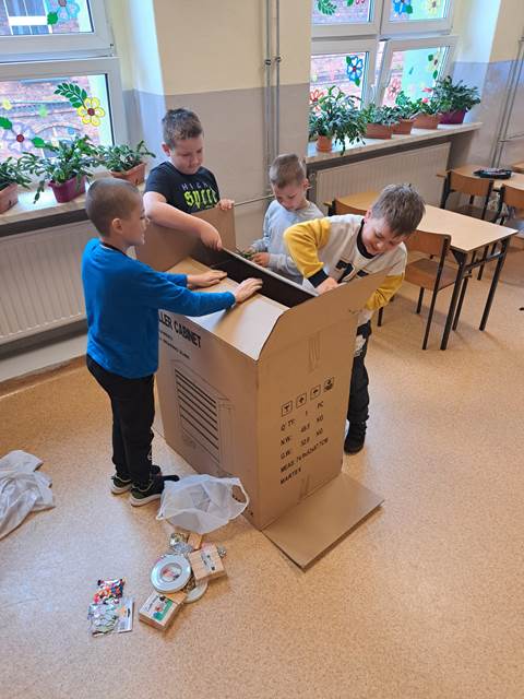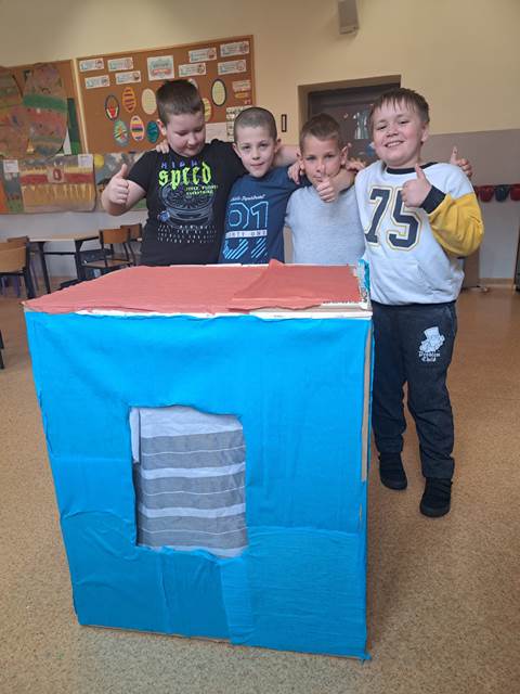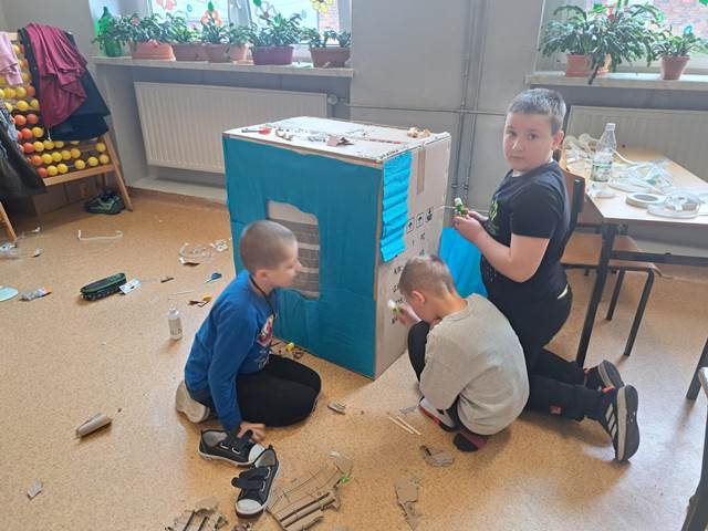 Naszym głównym wyzwaniem było zbudowanie domu z kartonów – i trzeba przyznać, że kreatywność uczniów nie miała granic! Powstały niezwykłe konstrukcje, pełne ciekawych rozwiązań i oryginalnych pomysłów.