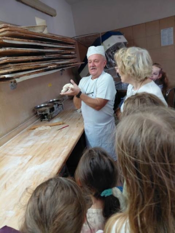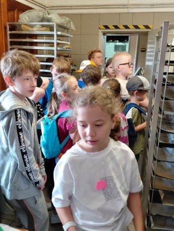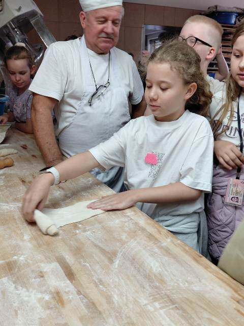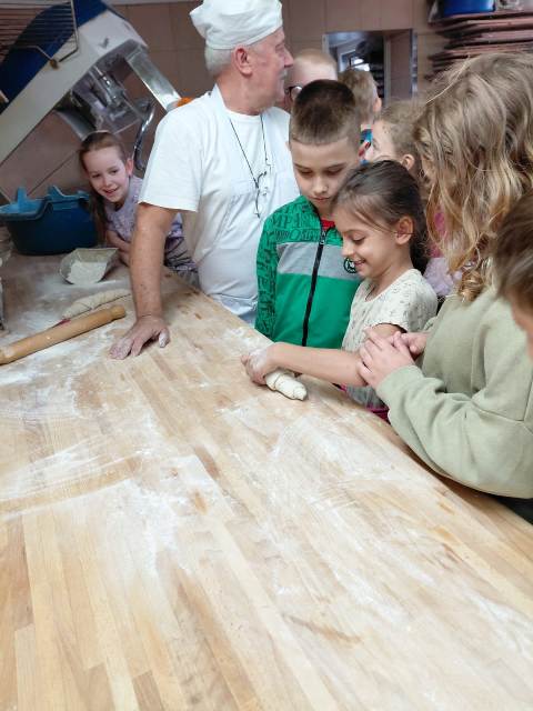 Uczniowie klasy 2c zostali zaproszeni przez rodziców Karolinki do piekarni. Dzieci odwiedziły piekarnię od wewnątrz. Zobaczyły maszyny do wypieku bułeczek. Same również próbowały wytoczyć rogalika... Po wizycie dowiedziały się, jak trudną pracą jest praca piekarza!