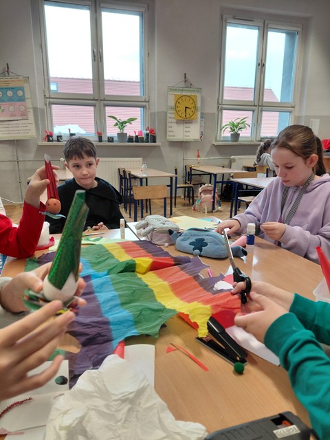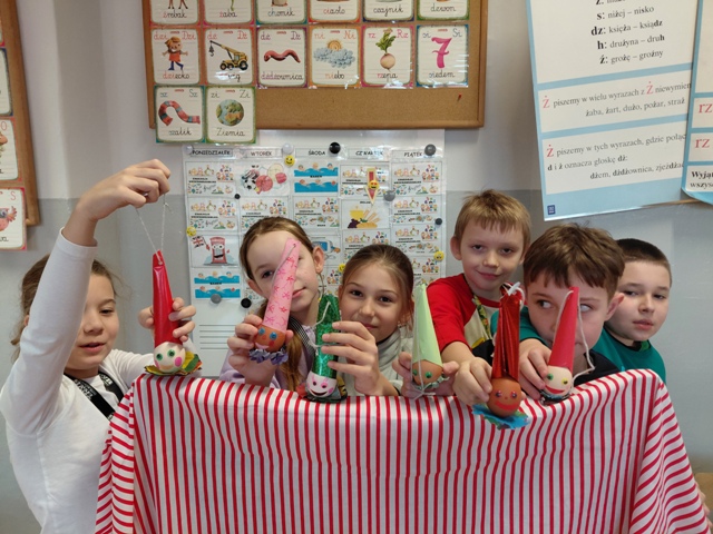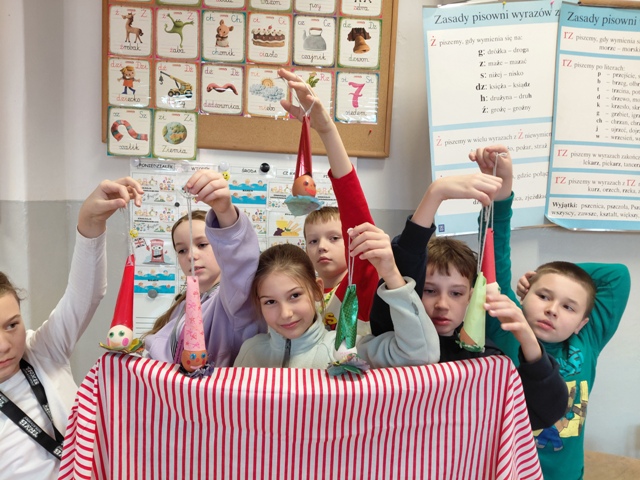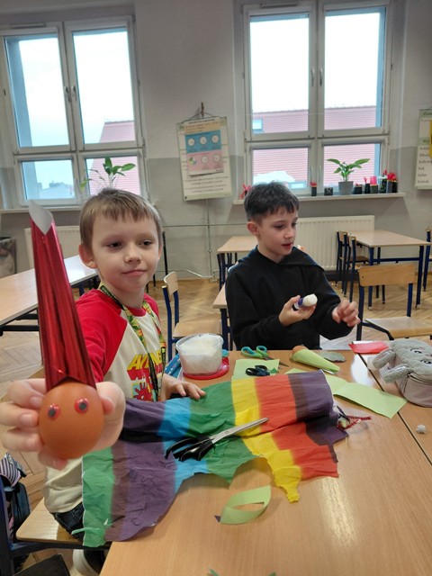 Następnie ćwiczyliśmy naszą precyzję oraz wyobraźnię poprzez wykonanie zabawek na choinkę. Nasze pajacyki z wydmuszki były wspaniałe!