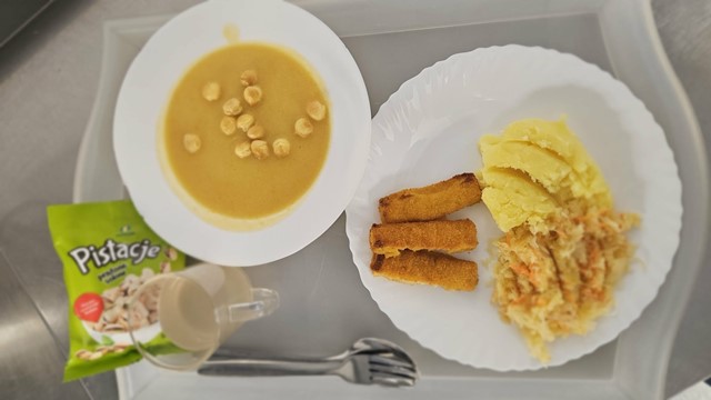 ZUPA KREM Z BROKUŁEM Z PRAŻONYMI PŁATKAMI MIGDAŁÓW (1,7,9), GULASZ (1,7), KASZA JĘCZMIENNA (1), SURÓWKA Z OGÓRKA KISZONEGO I JABŁKA, SOCZEK, PRZEKĄSKA NA DRUGIE ŚNIADANIE (1,7) |