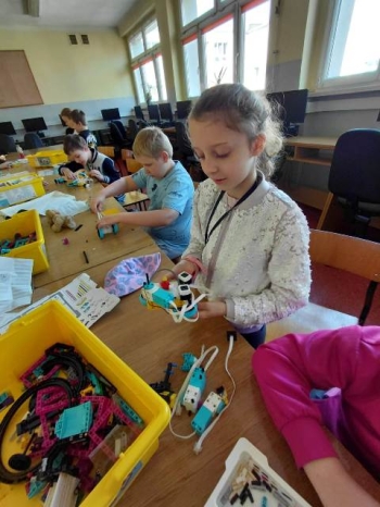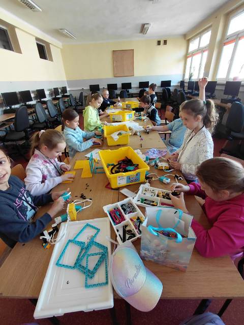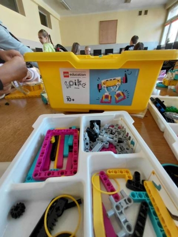 Klasa 2c w Laboratorium Przyszłości myśli przyszłościowo... z klockami lego education spike :-))