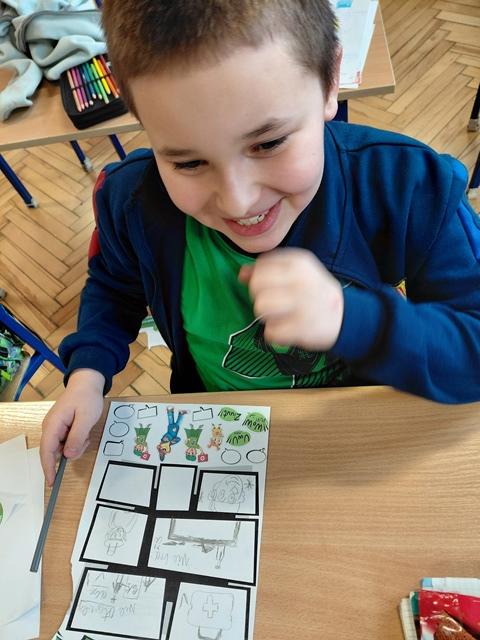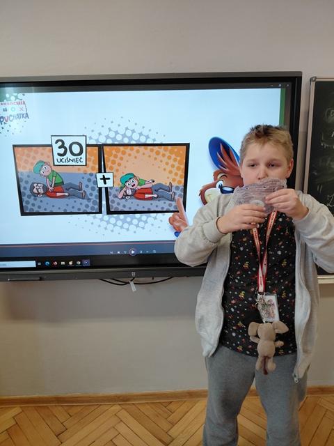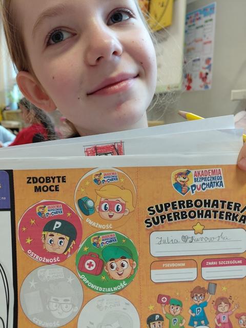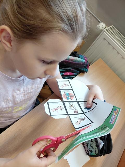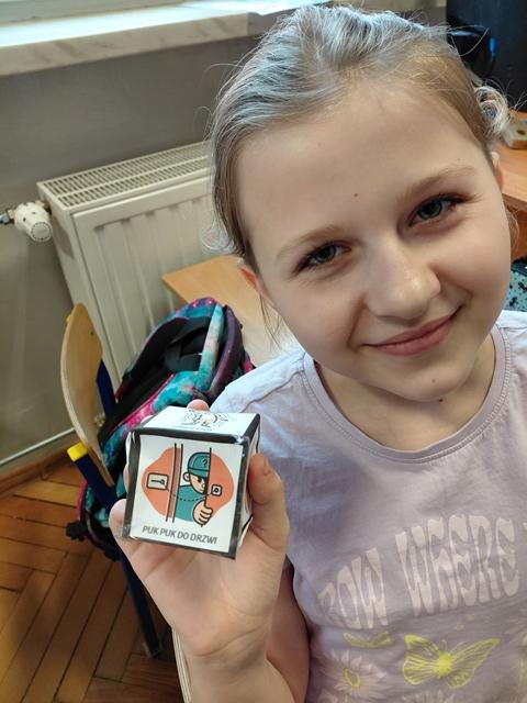 Puchatek i my pomogliśmy Grzesiowi zachować bezpieczeństwo w domu. Graliśmy w "kostkę bezpiecznego zachowania". Wiemy, jak zachowywać się, żebyśmy byli bezpieczni, gdy w domu przebywamy sami!