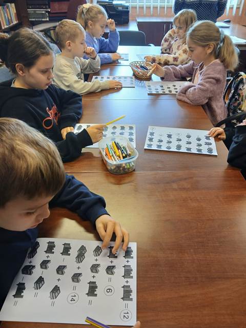 Liczyli regały i książki, poznali matematyczne zasoby, jakimi dysponuje biblioteka, brali udział w licznych zabawach i zadaniach matematycznych.