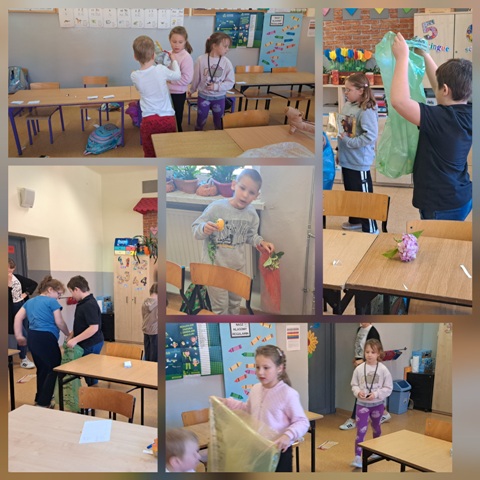 "Odpady. Frakcje. Pojemniki." Drugie zajęcia Akademii Łowców Odpadów w klasie 2c. Nauka w formie zabawy to coś co lubimy najbardziej.