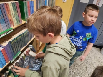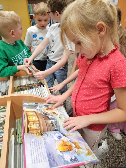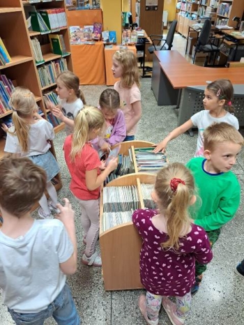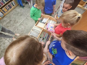 Dzieci zwiedziły wypożyczalnię, dowiedziały się jakie znajdują się tutaj książki i opowiedziały o swoich ulubionych postaciach bajkowych.
