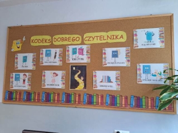 Następnie, obejrzały prezentację "Kodeks dobrego czytelnika", z której dowiedziały się jak, należy dbać o książki.