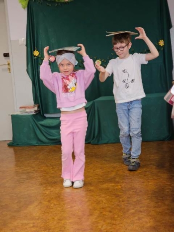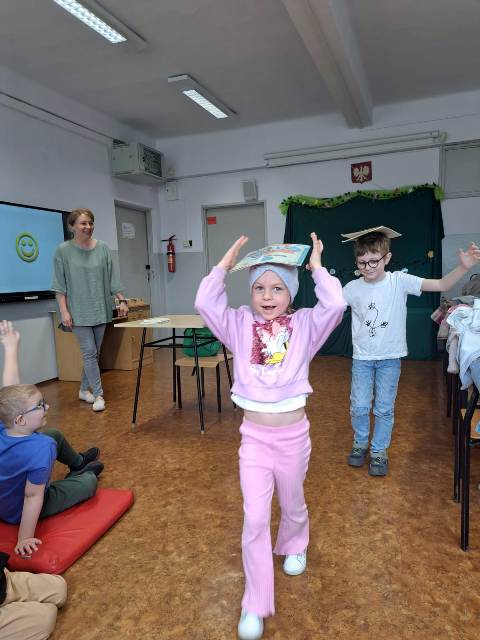 Przedszkolaki sprawdziły też, czy wiedzę zawartą w książkach uda się udziwgnąć na głowie :)