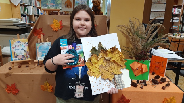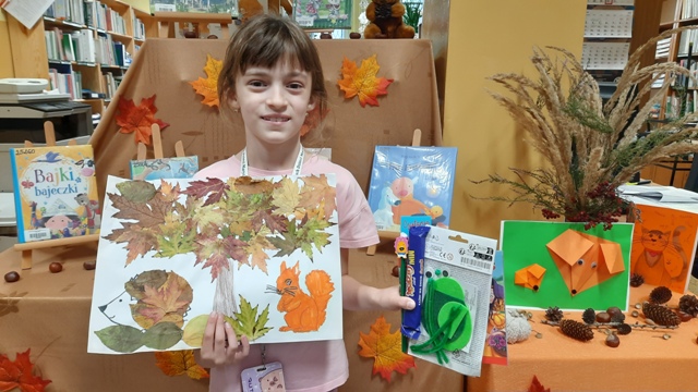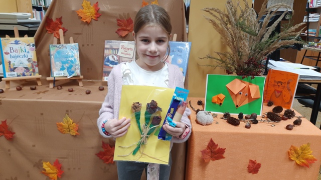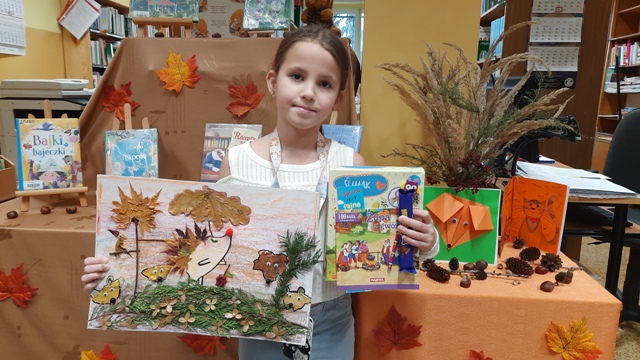 W konkursie plastycznym dla klas 1-4 "Jesienne cuda z liści" nagrodzono: