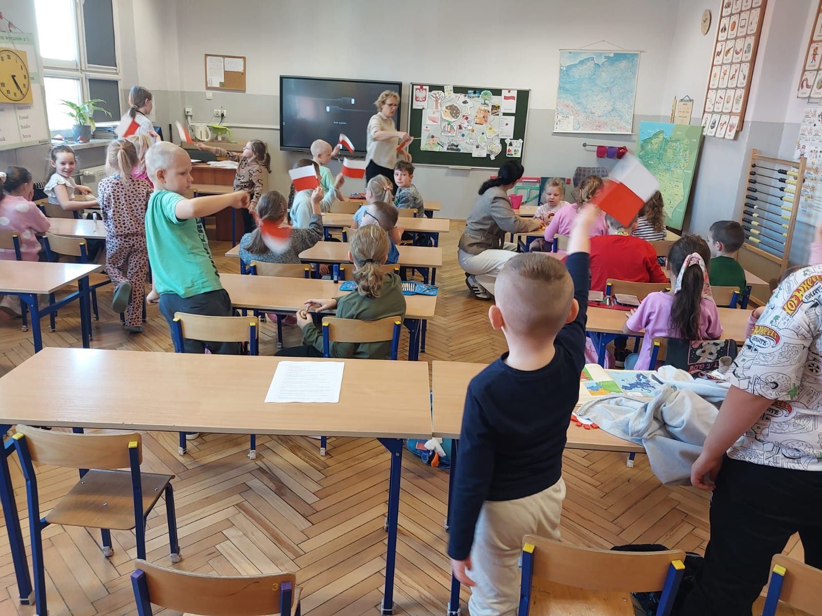To właśnie ona zmotywowała wychowawczynie do podjęcia współpracy i współdziałania obu grup. Dzieci, wspierając się podczas pracy poznawały historię utraty i odzyskania niepodległości przez naszą Ojczyznę.