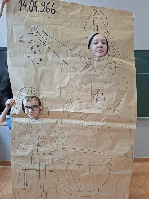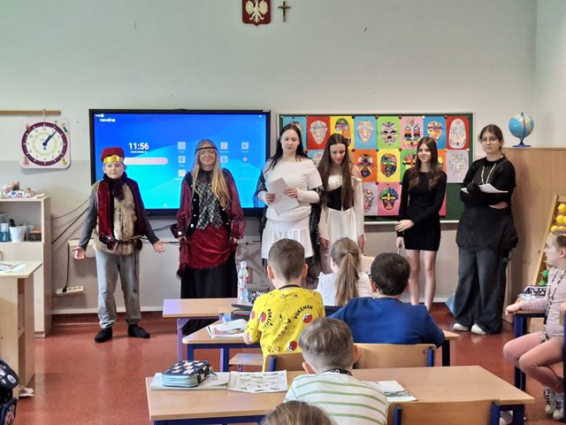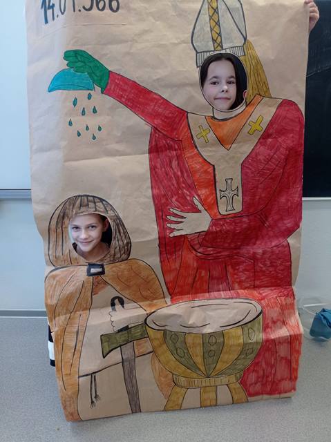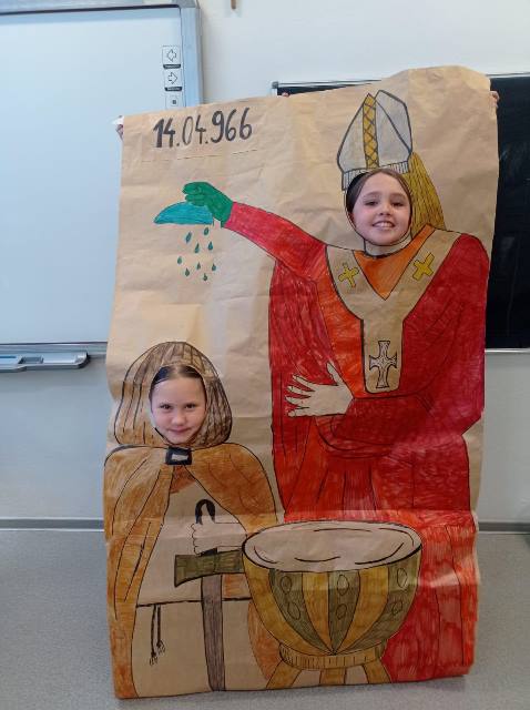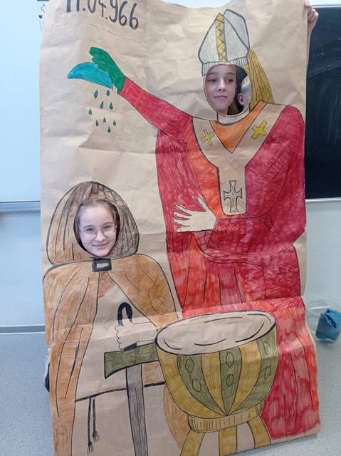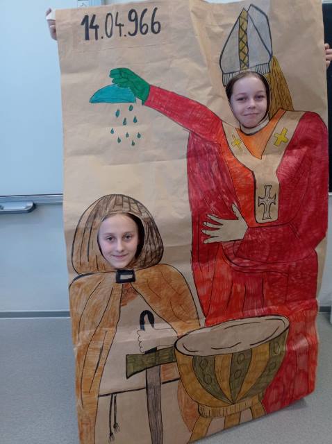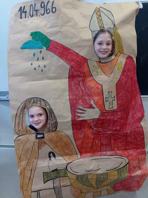 14 kwietnia wszyscy uczniowie naszej szkoły wzięli udział w uczczeniu państwowego Święta Chrztu Polski. Dla młodszych były kolorowanki, dla starszych test z wiedzy historycznej.