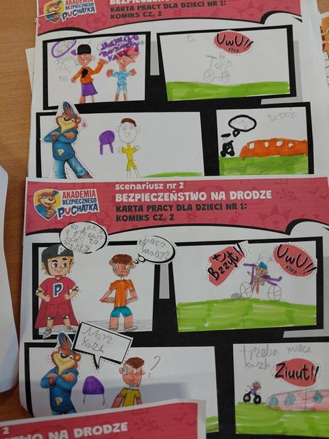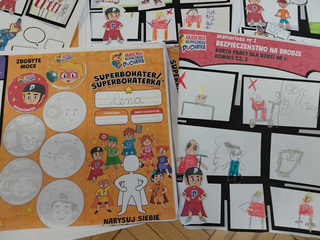 Puchatek zapoznał nas z zasadami zachowania na ulicy. Po zajęciach wiemy, jak zachowywać się, żebyśmy byli bezpieczni.