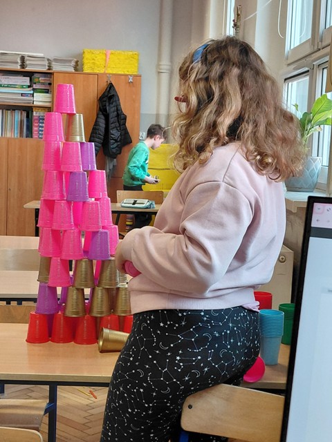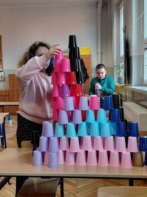 Konstruowaliśmy z kolorowych kubeczków.