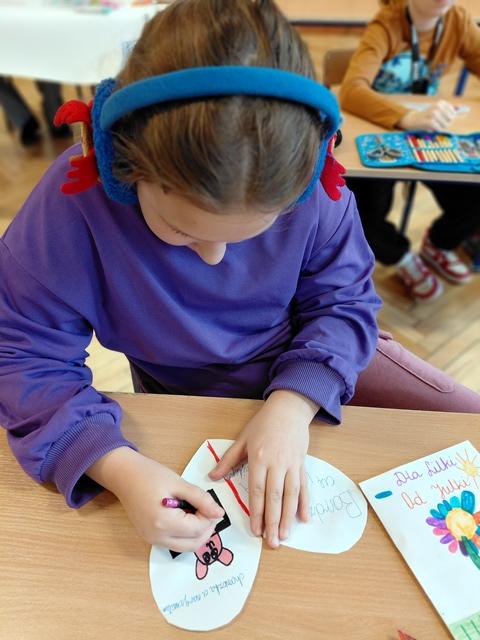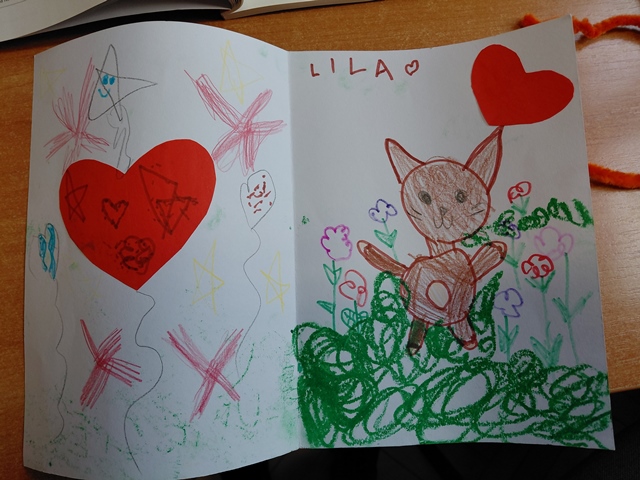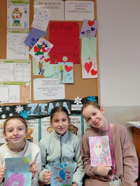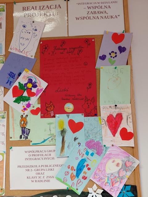 6-latki z grupy Liski wraz z paniami przesłały trzecioklasistom najcudowniejsze laurki walentynkowe! Były na nich serduszka, kwiatuszki, kolorowe serpentynki oraz samodzielnie napisane LUBIĘ CIĘ!!! Ileż wysilku i "przyjaźni" malowało się na tych pracach!!!