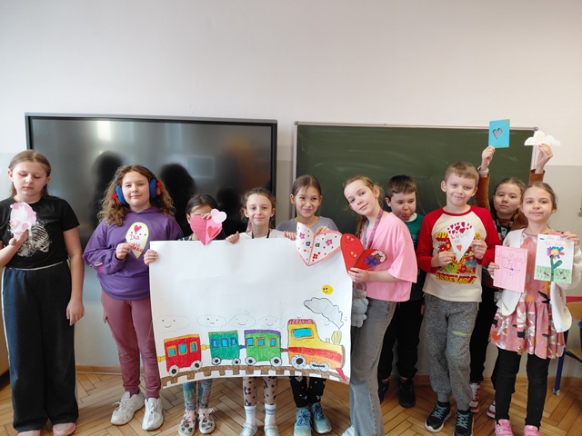 W odpowiedzi na Walentynkę trzecioklasiści z C wykonały walentynkowy pociąg serc!! Pociąg został przekazany grupie Lisków. Był naprawdę piękny i równie przyjazny. Uczniowie włożyli w pracę mnóstwo serca!