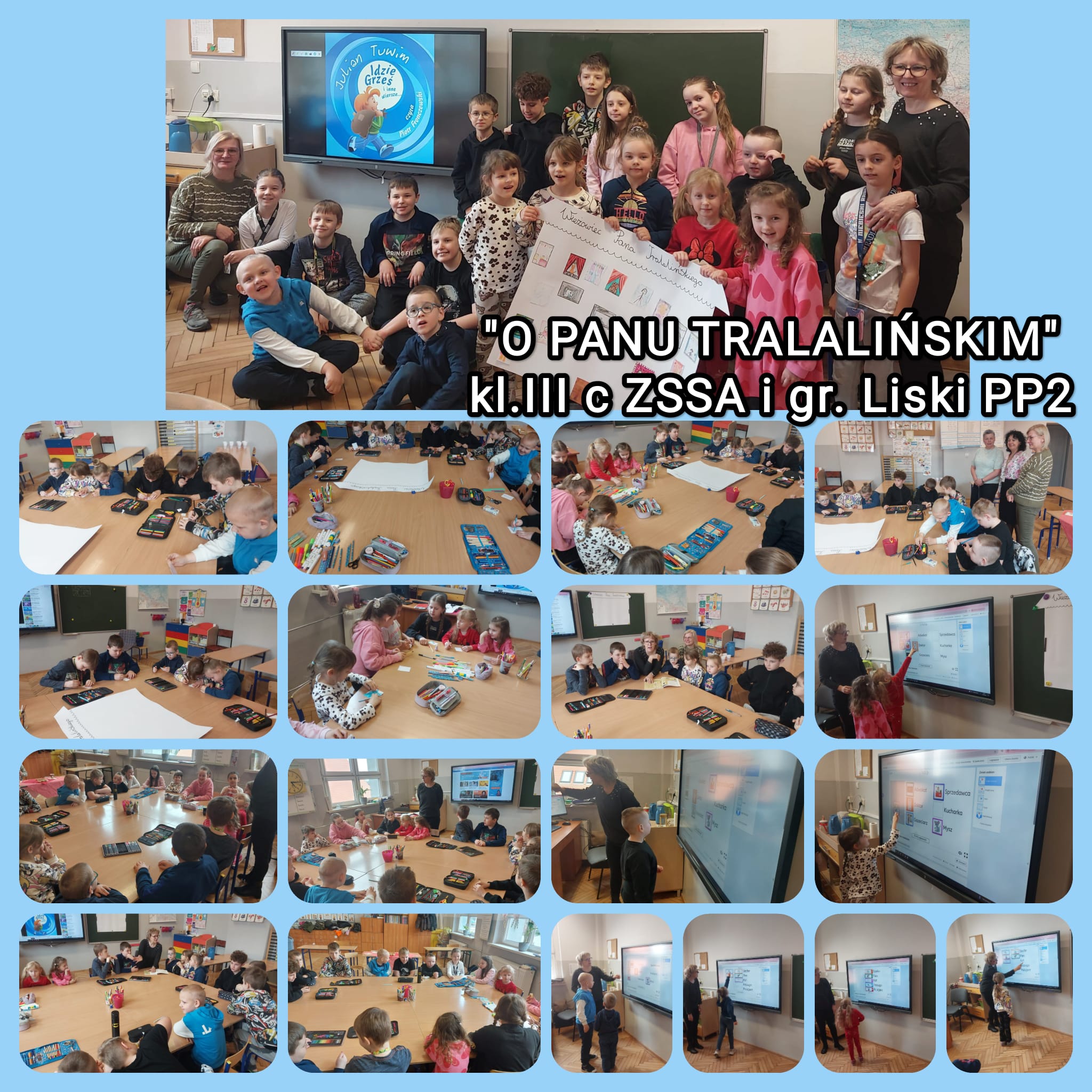 Wszystkie dzieci poznały wiersz J. Tuwima pt. "O Panu Tralalińskim". Należało przedstawić wszystkich sąsiadów głównego bohatera.